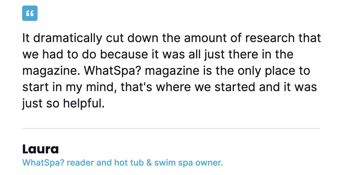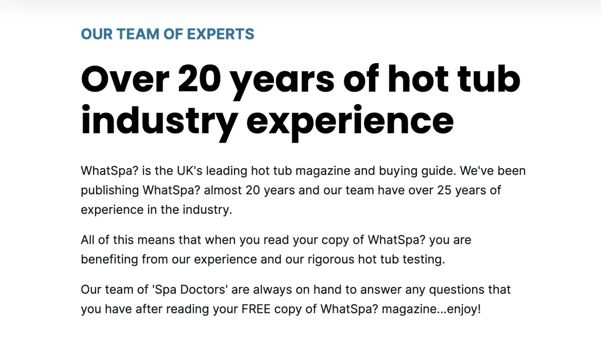 Our mission since 2005 has been to put WhatSpa? into the hands of as many hot tub buyers as possible, completely free of charge. We subsidise print and postage by charging hot tub manufacturers and dealers for advertising across our magazines and websites so that we can keep WhatSpa? free for our readers.
